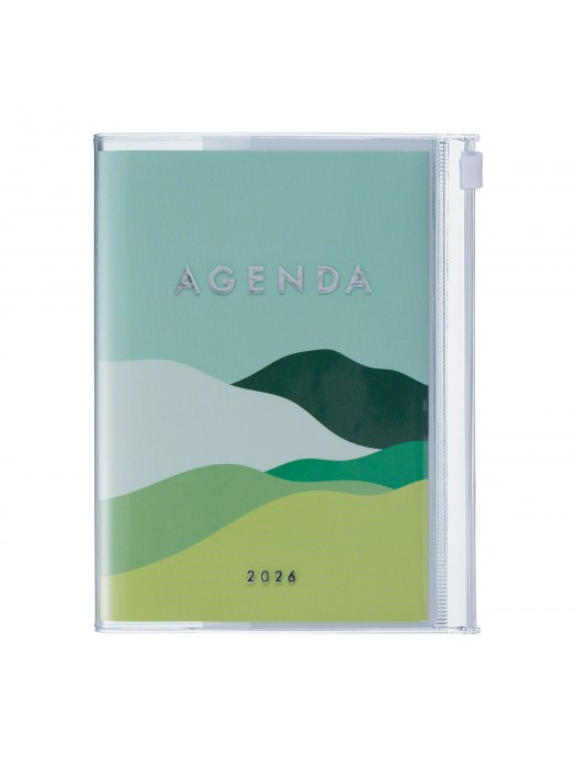 Cet agenda au format A6 est pratique pour la prise de notes. Design vertical - 16 heures base horaire. Pages mémos en 3 parties avec tableau de rendez-vous mensuel.